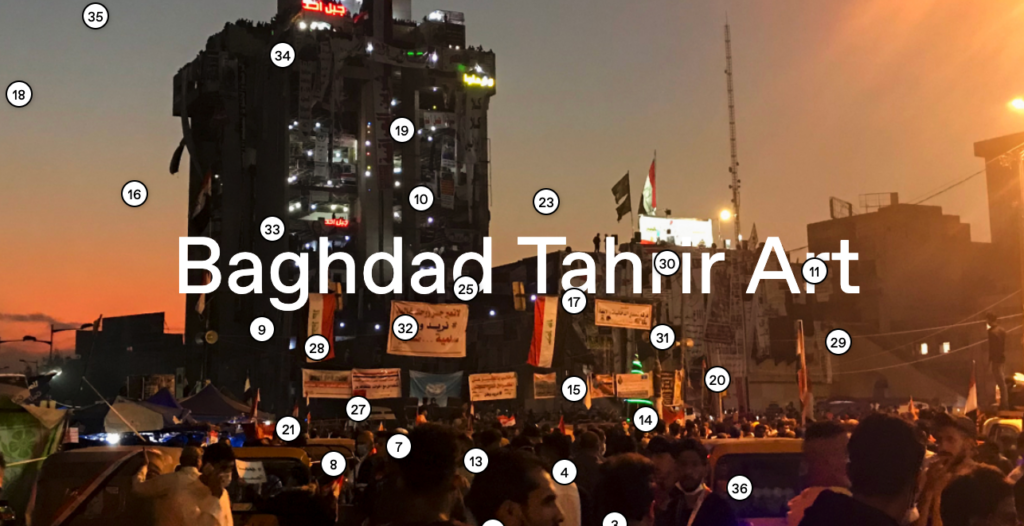 Baghdad Tahrir Art: a living archive of murals, photos, posters, and videos from the 2019 youth protests in Baghdad’s Tahrir Square and surrounding streets.